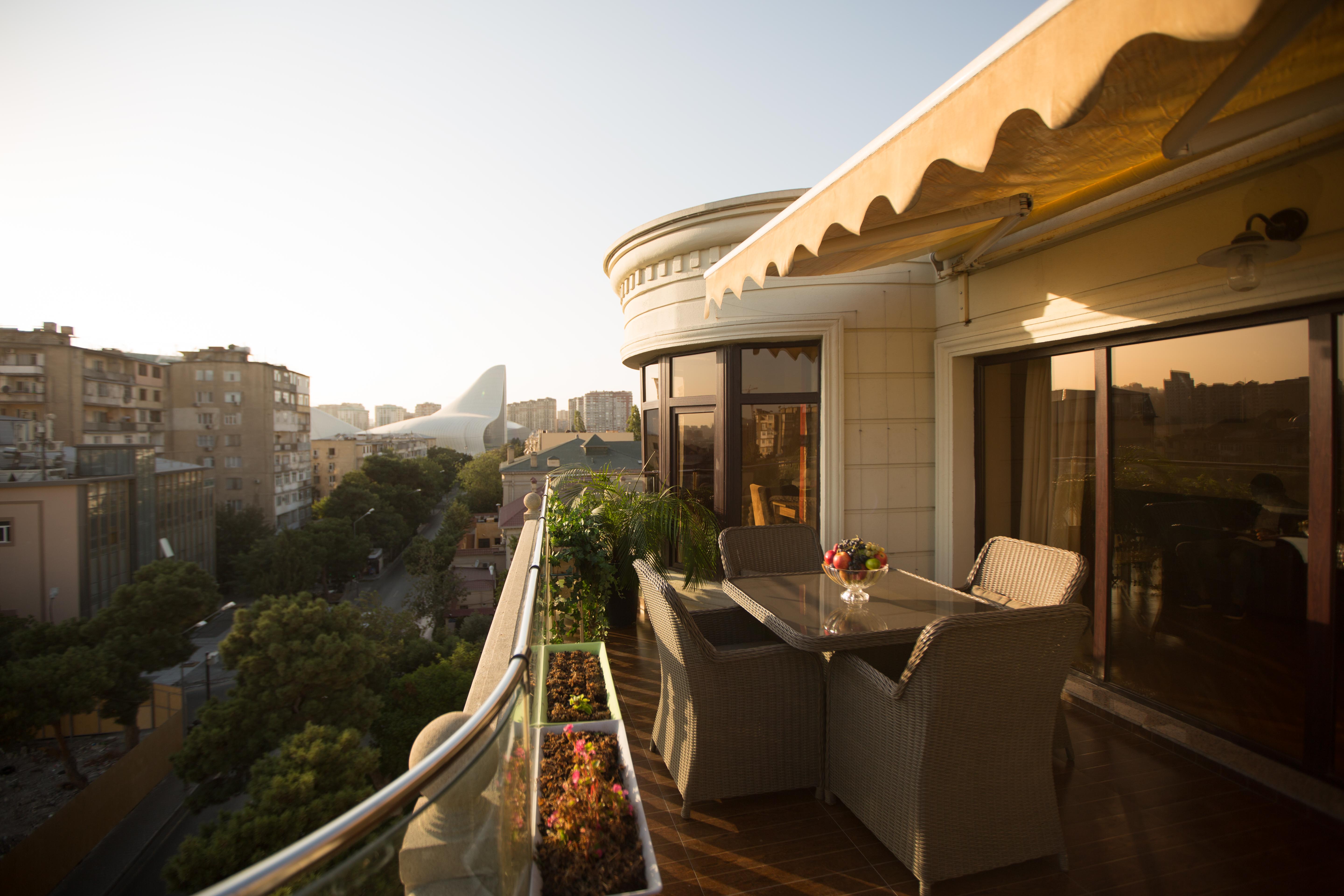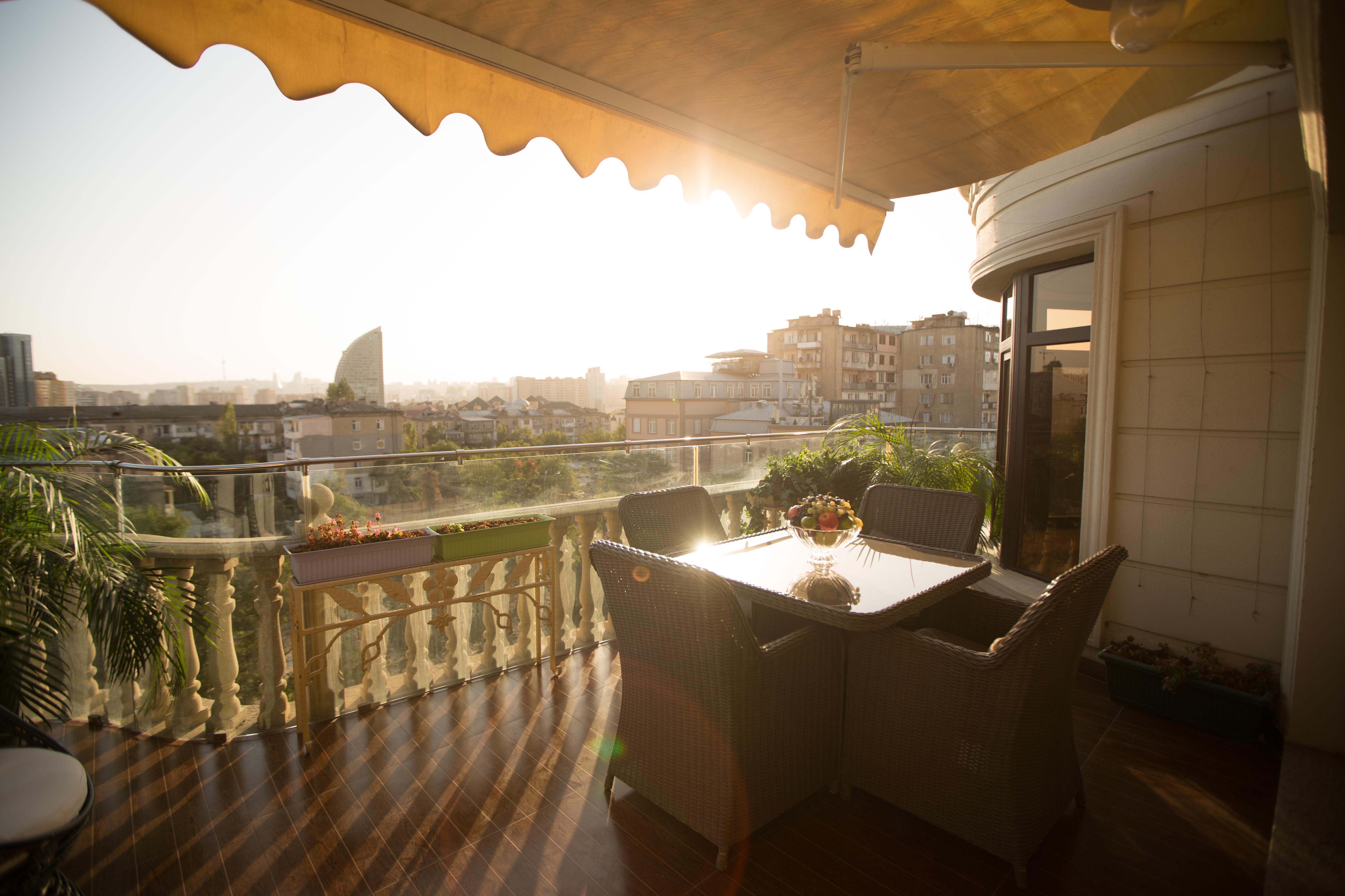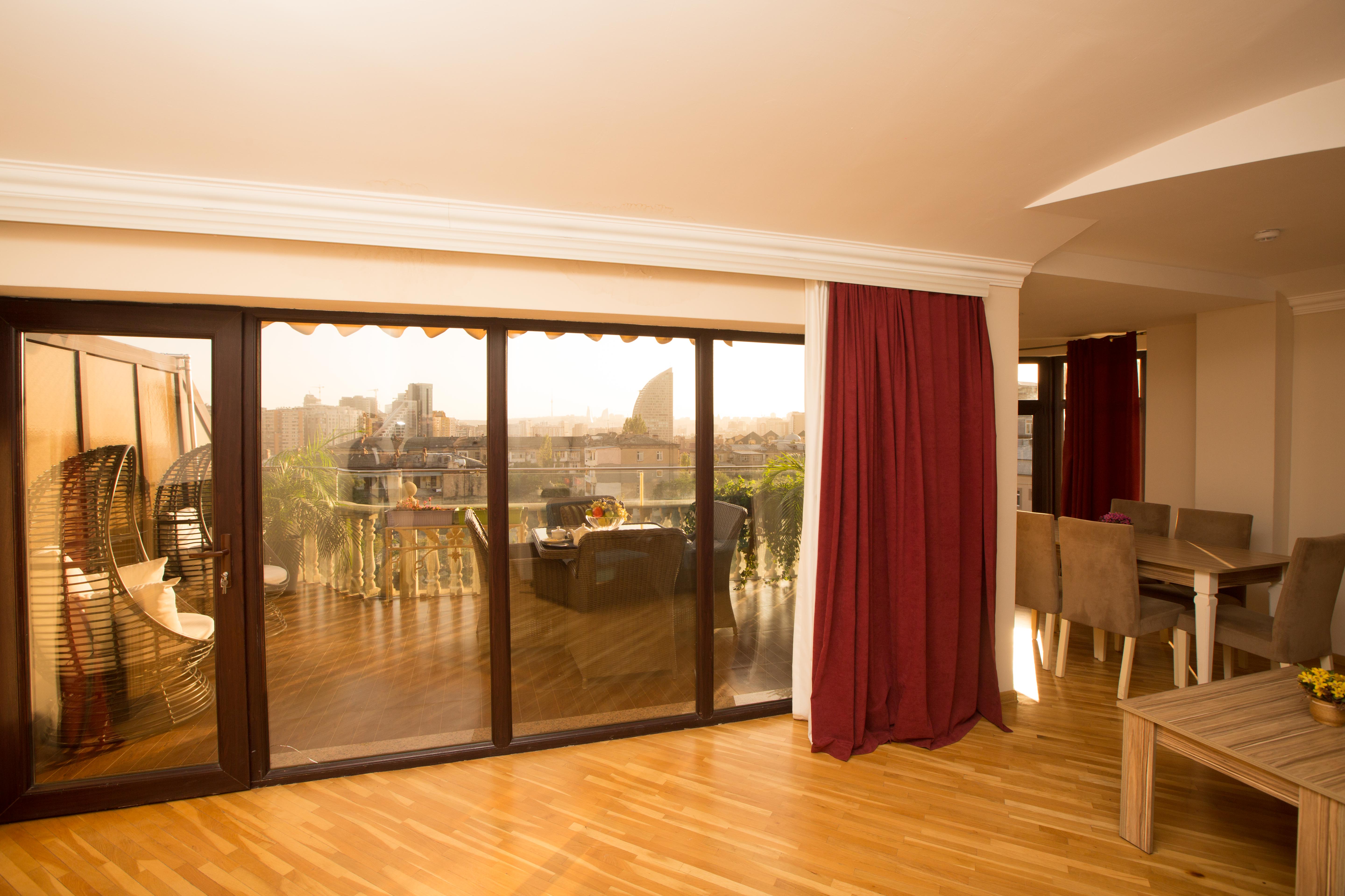 The terrace, which offers a view of Haydar Aliyev Centre and Baku, is the most unique feature of this apartment.