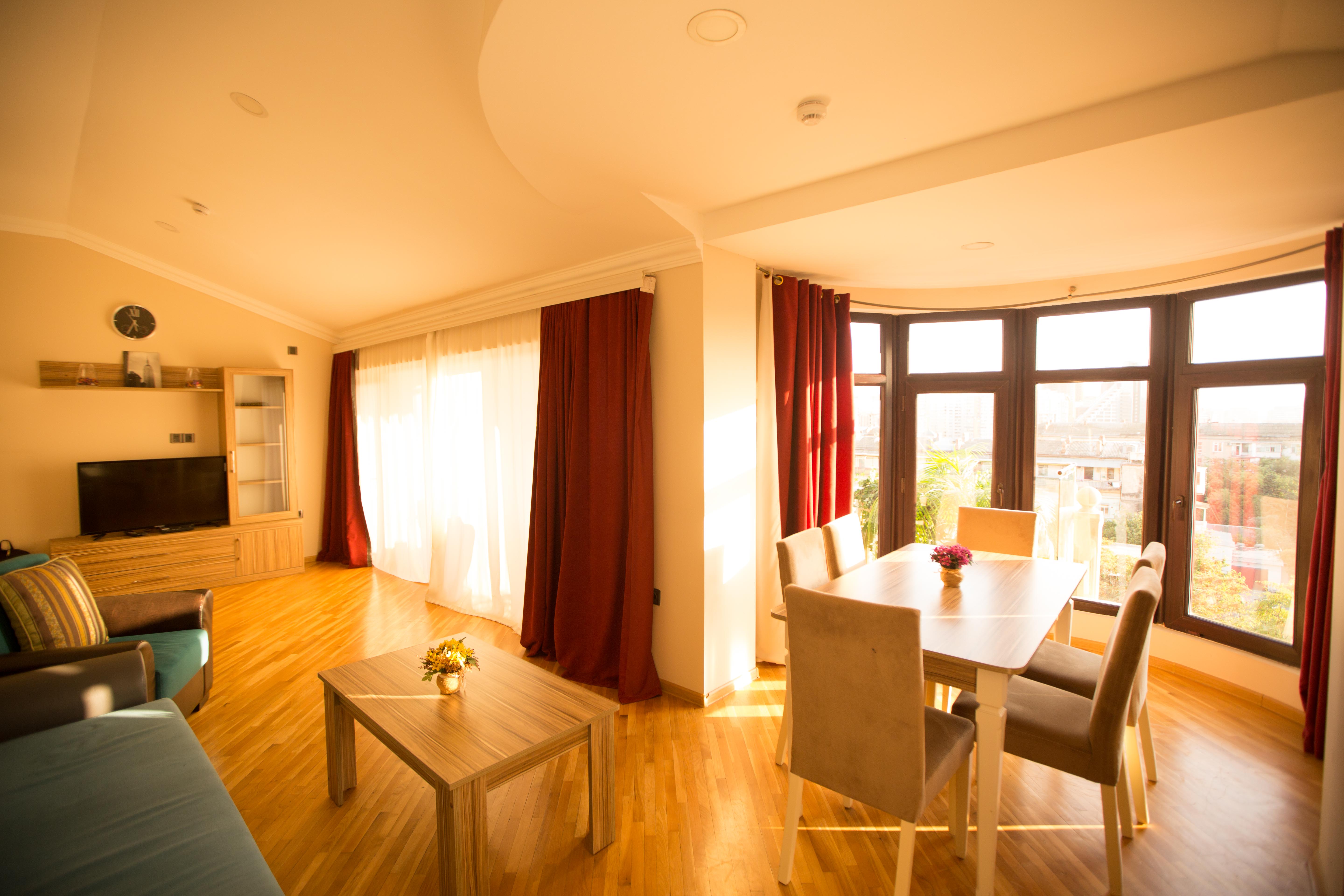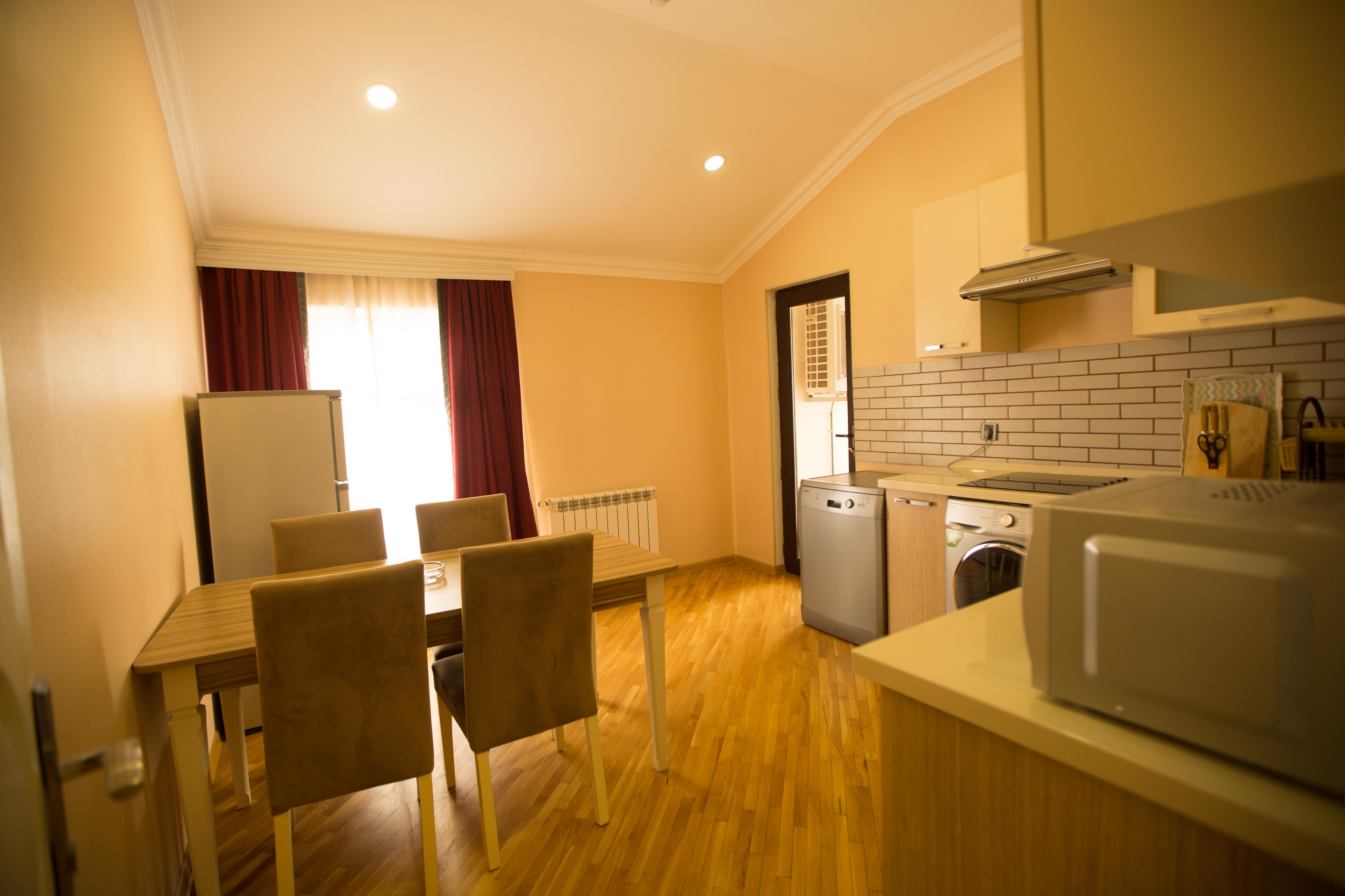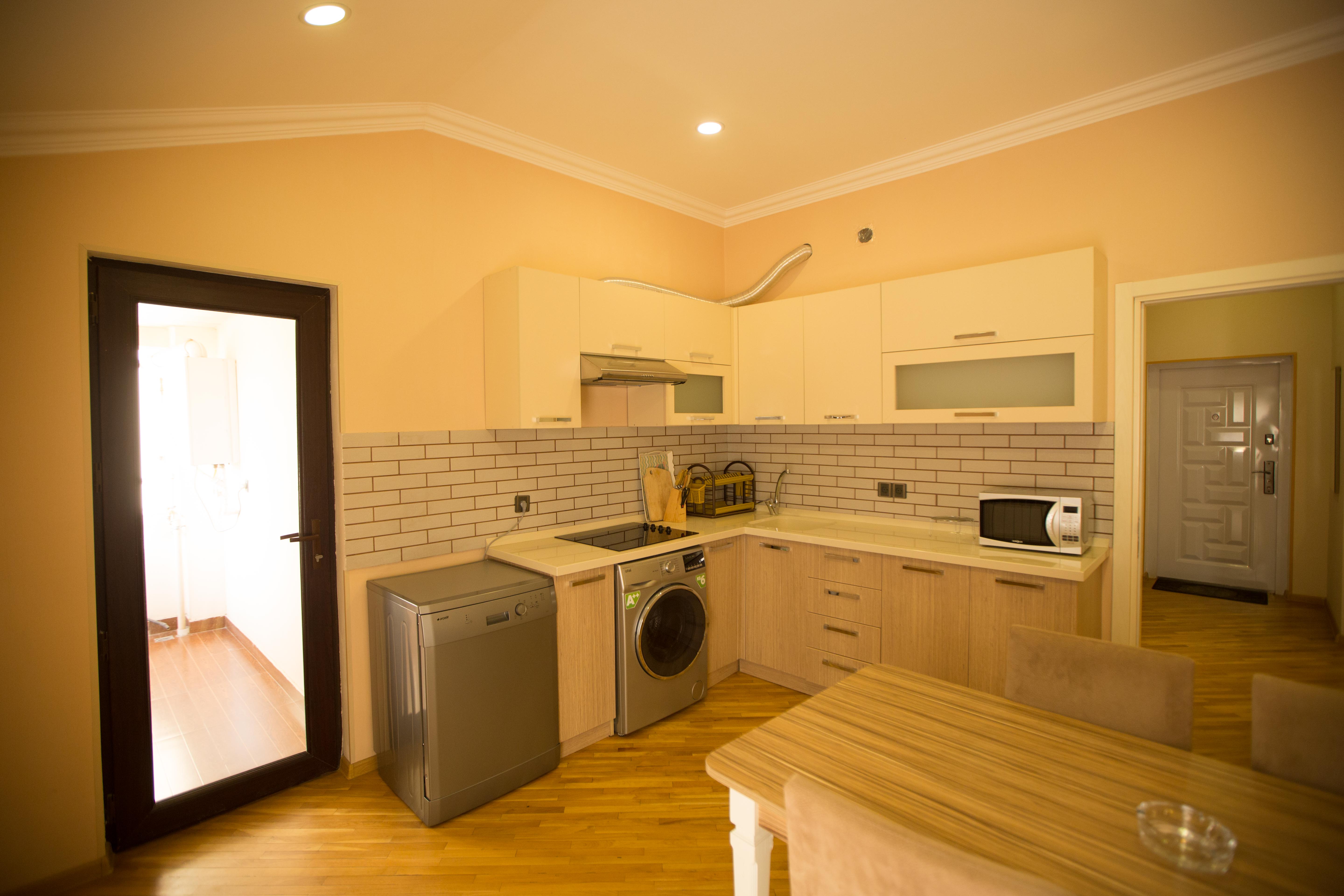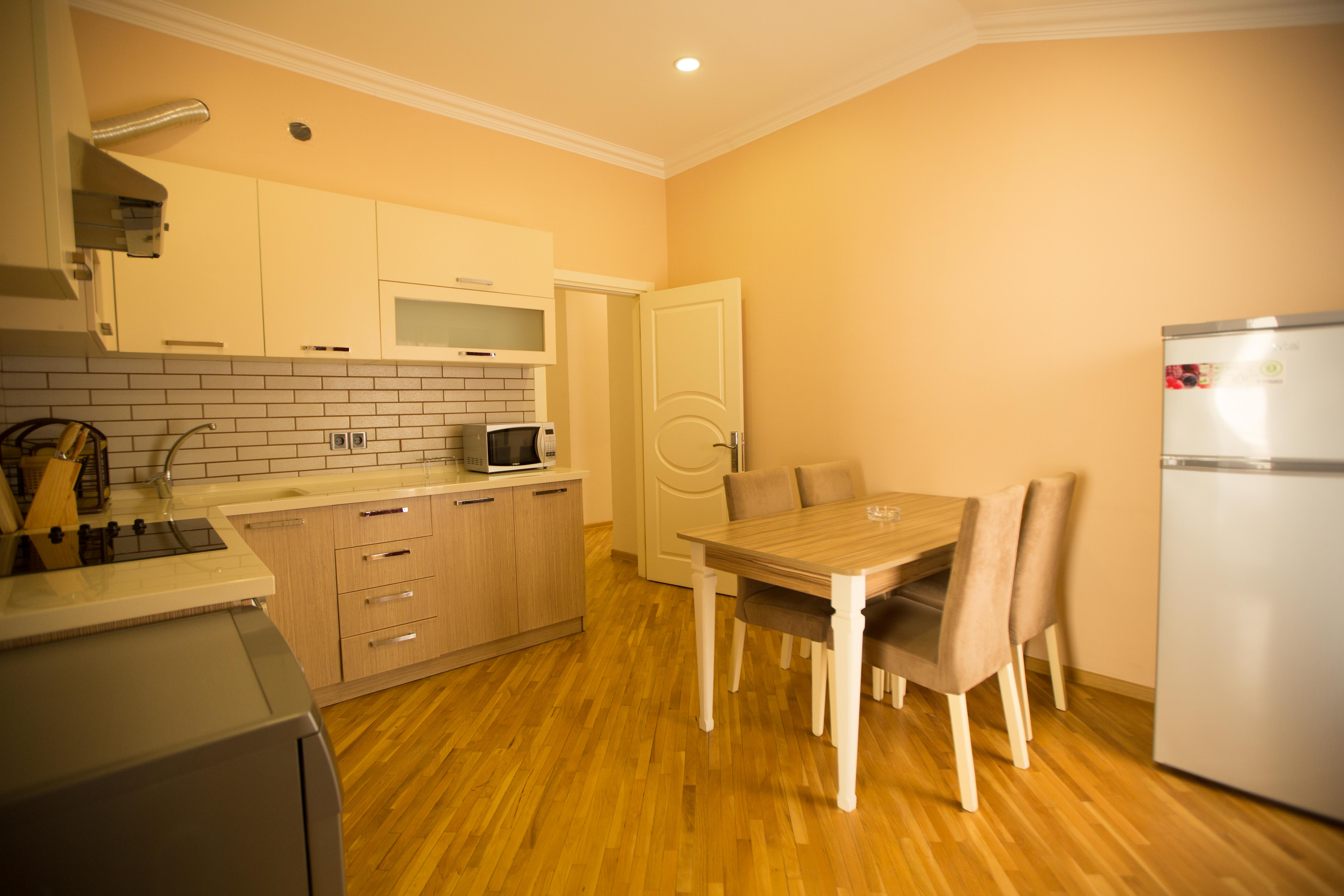 The terrace, which offers a view of Haydar Aliyev Centre and Baku, is the most unique feature of this apartment.